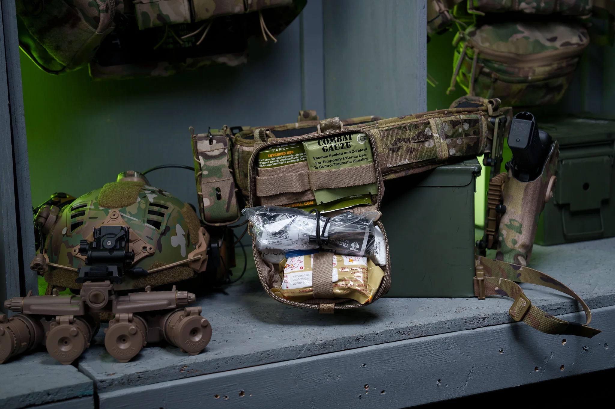 Not every situation calls for a full IFAK. The AMP is designed for the gaps — a compact, rapid-deployment medical pouch that mounts to MOLLE or a belt and puts essential trauma capability in reach with a single pull tab. Small enough to carry everywhere. Capable enough to matter when it counts.